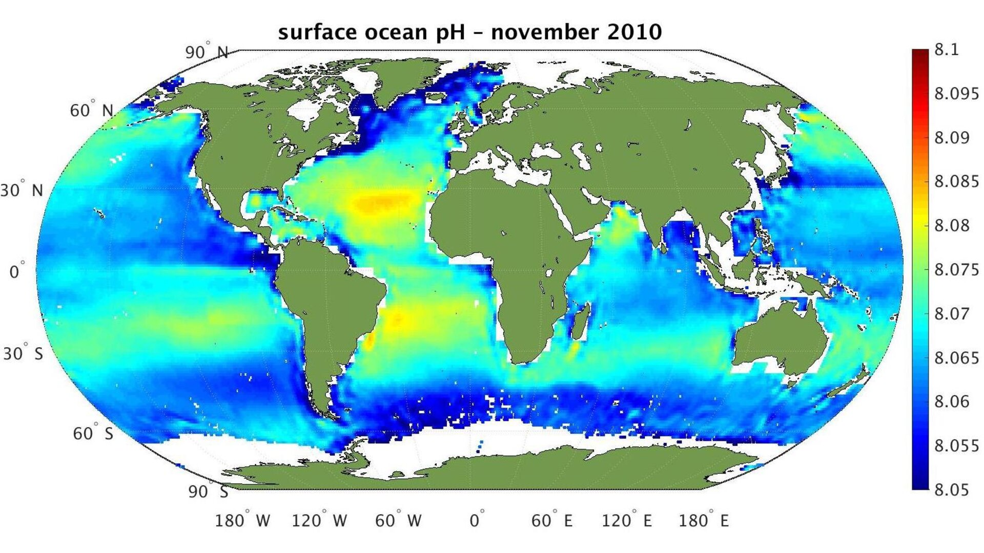 Ocean acidity map (credit: European Space Agency, SMOS satellite)