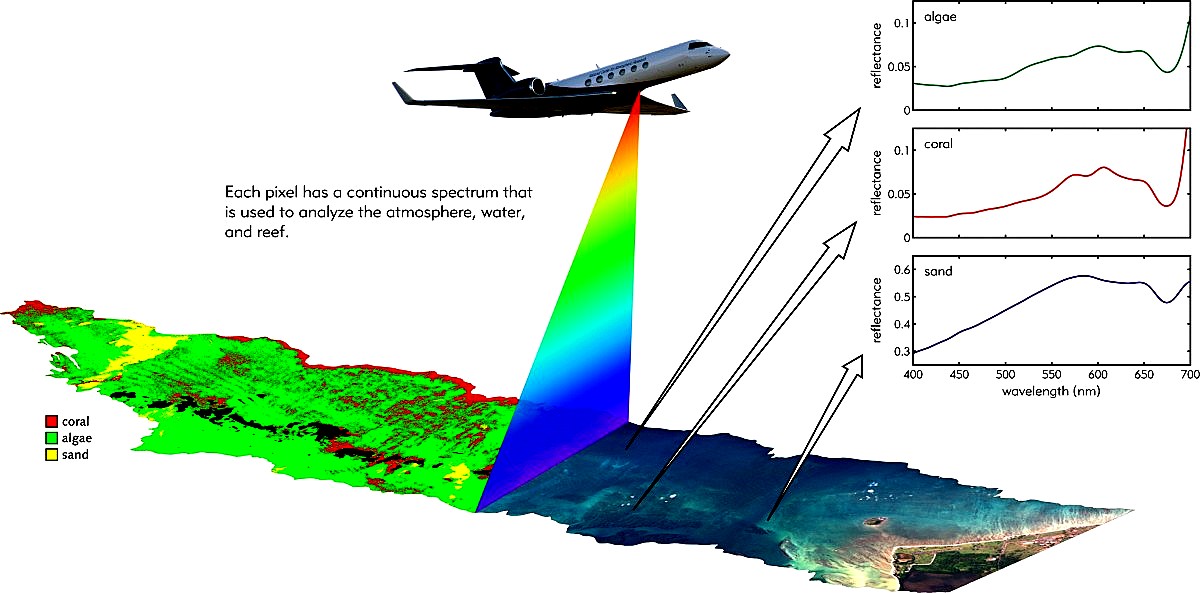 JPL's long-running project the Coral Reef Airborne Laboratory (COral) helps to assess the condition of reef ecosystems in Palau, Guam, and the Marianas. COral been being expanded to collaborate with the elite marine biologists at James Cooke University in Queensland who have been mapping the Great Barrier Reef in Australia at sea level. This combined science, aerial mapping, and reef status survey efforts have greatly accelerated the capacity of the marine ecologists to understand, and potentially restore, damaged sections due to ocean heatwaves, a result of climate change.