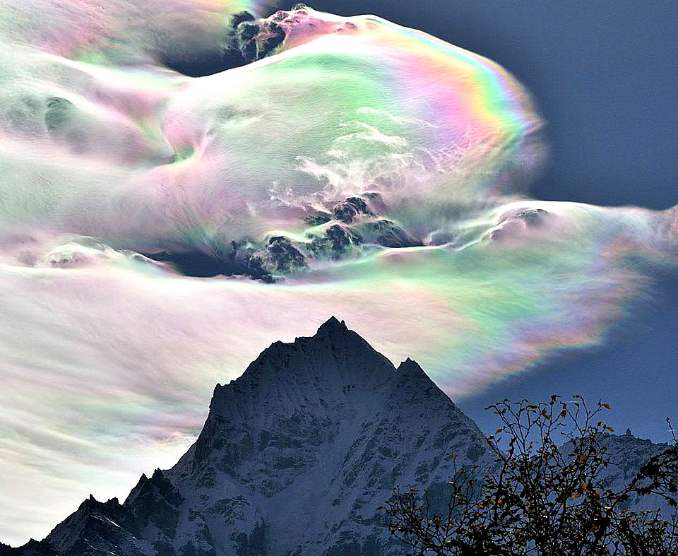 Thamserku, iridescent clouds, Nepal (credit: NASA/Bartunov)