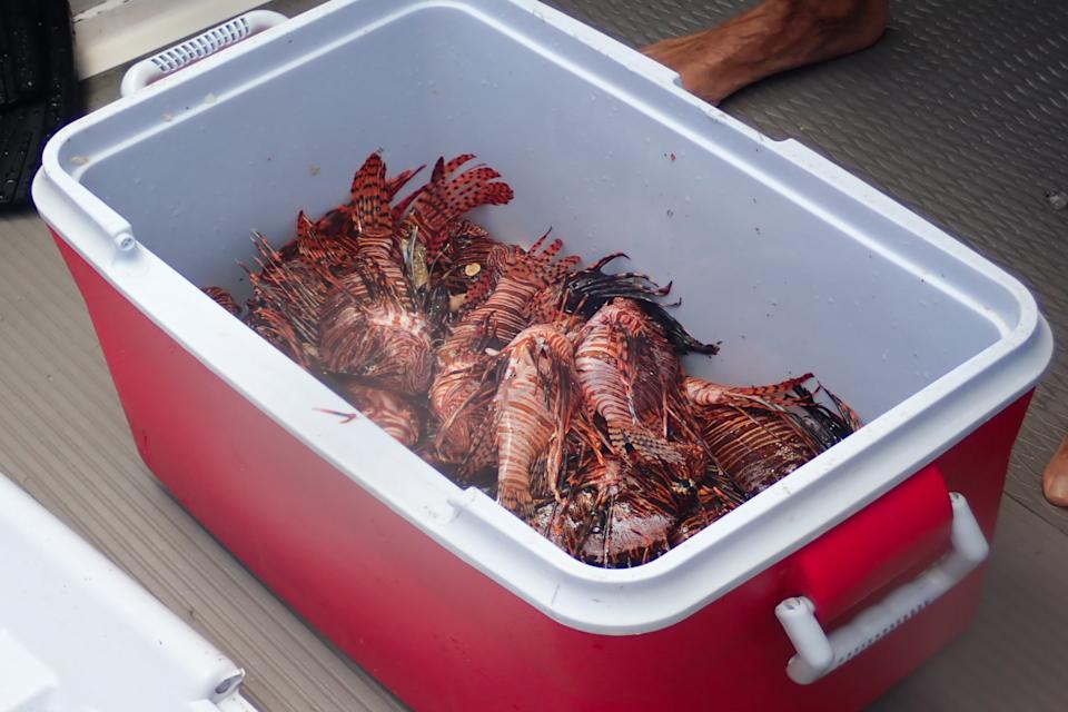 Lionfish fishing boat catch (credit: Lionfish Open) Grilled Lionfish dinner (credit: Lionfish Open)