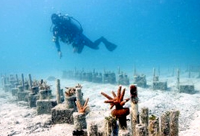 The Lab has developed methodologies to cultivate coral polyps including how to restore them into the natural marine environment. The researchers have systems to grow hard and soft corals, sea grasses, kelps, vertebrates and invertebrates, all required for healthy reefs. They grow coral polyps---the symbiotic association of a tiny animal and a photosynthetic bacteria that build reefs---in tanks of circulating sea water. As they grow, the polyps are divided into pieces which become "seeds" for cultivating more polyps. They small corals develop far faster than they would naturally in the ocean. When ready they are transplanted onto depleted reefs. Even though the coral restoration technology "package" is experimental, the results have been exceptional and more test plantings are planned.