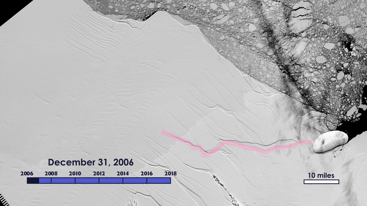The UK-based research organization Project MIDAS has monitored the progress of the Larsen-C crack and related glacial dynamics along with the British Antarctic Survey. A 2006-2021 timelapse photo-animation of the growing crack and the ice-shelf's collapse is now complete. WHB